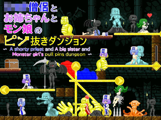 マウス操作型のピンを抜くドット絵アニメリョナエロモン娘パズルゲームです。