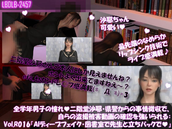 【d_666116】【△100●100】学業成績学年一位の二階堂沙耶・県警からの事情聴取で、自らの盗撮被害動画の確認を強いられる:Vol.R016『沙耶のAIディープフェイク・学校の図書室で先生と立ちバックでセックス』【Libido-Labo】
