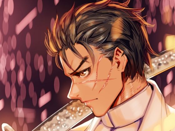 長身のお姉さん、刀、少年。